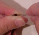 As you become more comfortable with the technique, you'll find you don't need to squeeze the thread as hard. With heavier yarns, you may find it difficult to get that much thickness through the eye. If you have this trouble, prick the end of the yarn with the needle so that it frays some then use this flatter area to fold over the needle. When using stranded threads, like 6-strand floss, make sure you have all strands through the eye before pulling. The technique may seem a little awkward at first but stick with it and you'll be threading with ease in no time! |