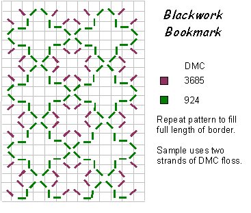 Here is a two-color blackwork bookmark pattern. The pattern can also be used for a towel, around the neck of a shirt, or anywhere you want to add just a touch of color and class.